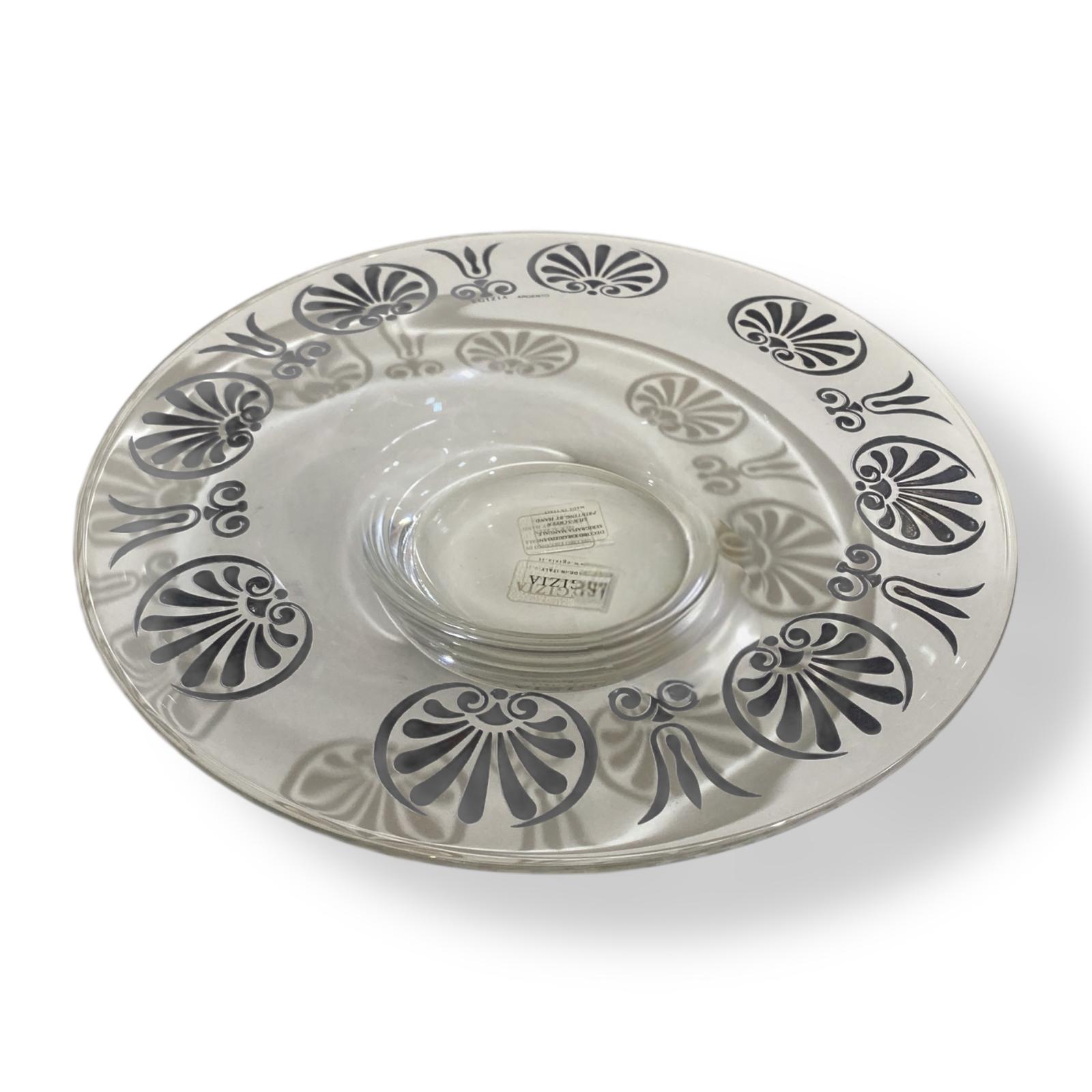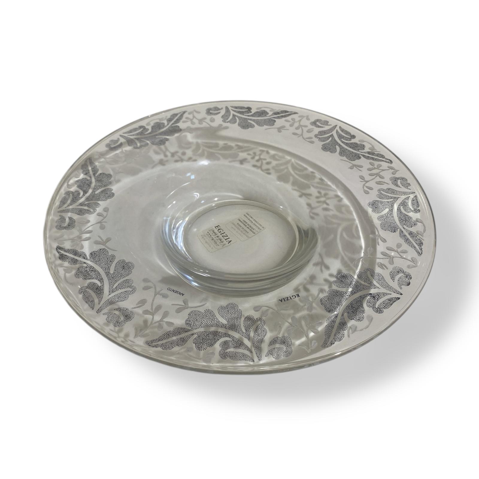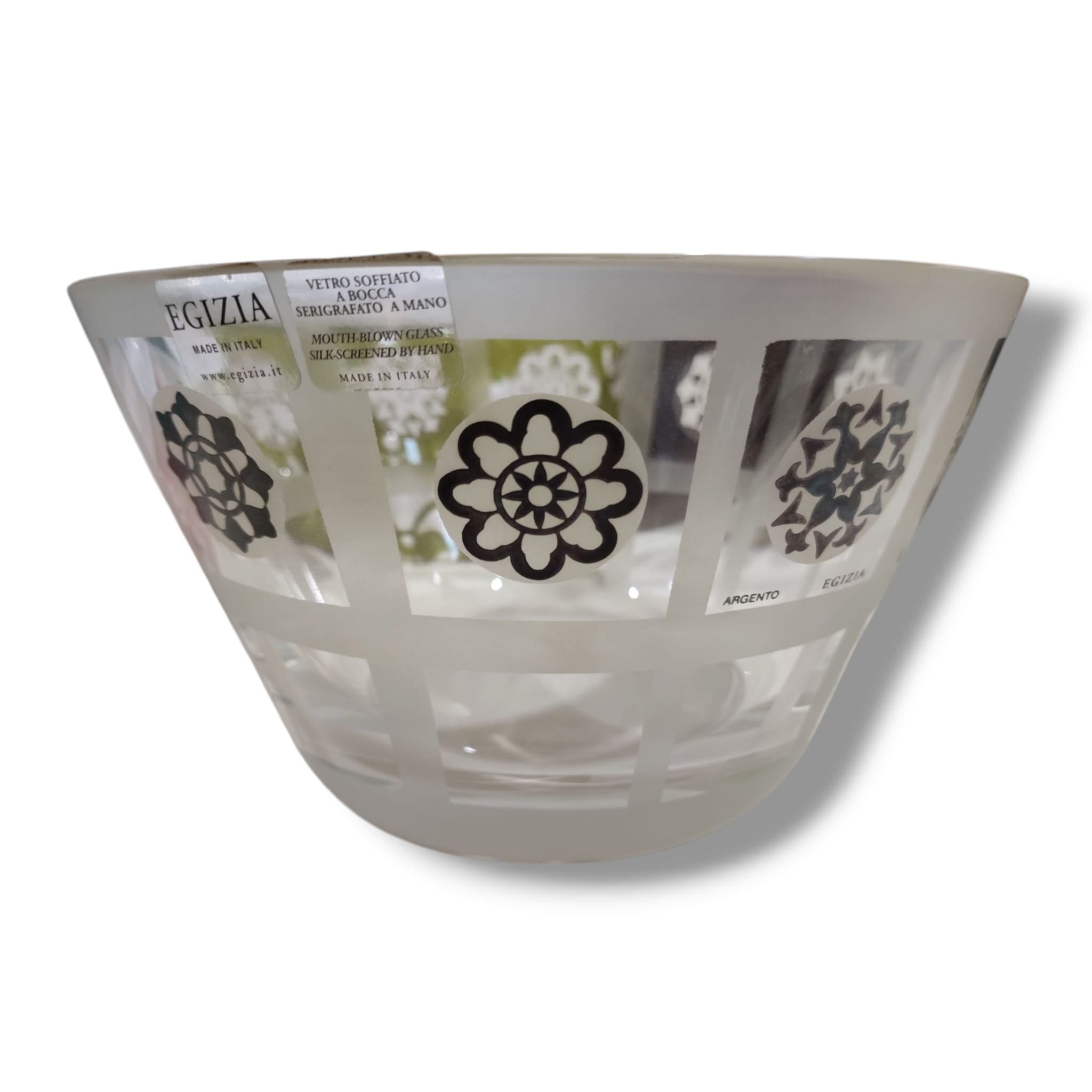 EGIZIA Ciotola 22,7cm Vetro Trasparente con ricami in Vero Argento