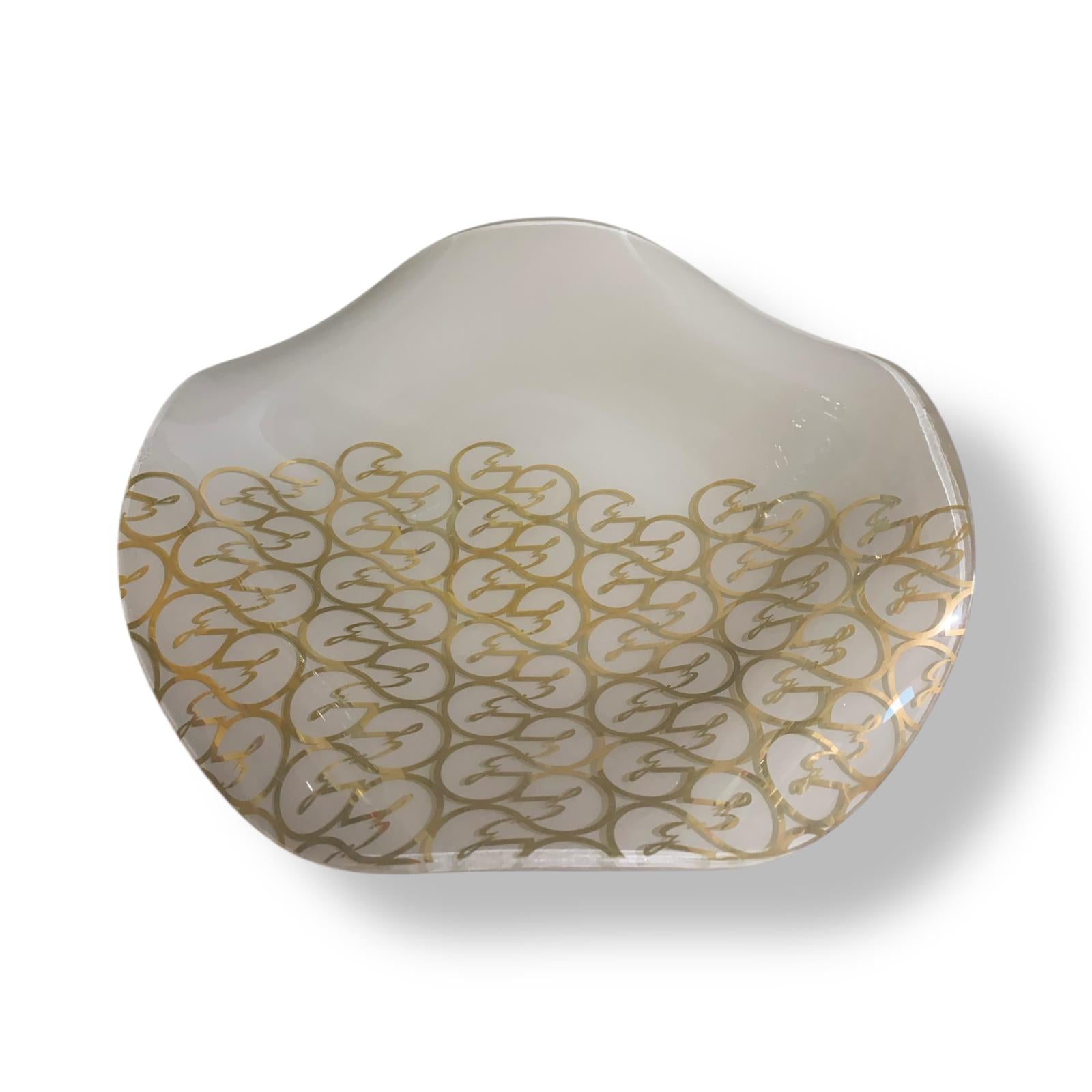 EGIZIA Coppa/Centrotavola 37,5cm Vetro Bianco con Ricami a omaggio per Kolo Moser