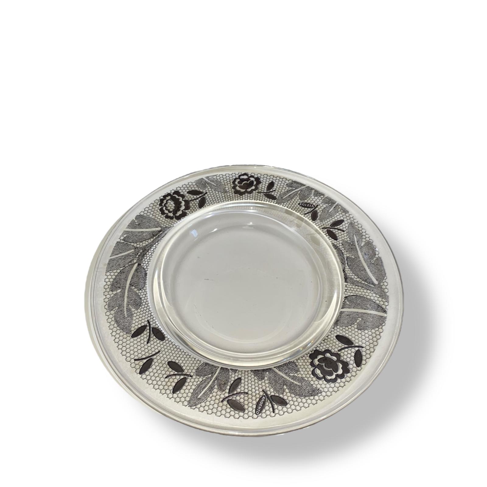 EGIZIA Ciotola/Piatto 22,5cm Vetro con ricami in Vero Argento