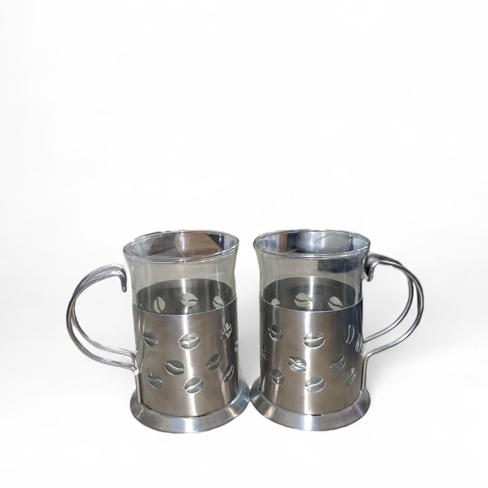 SET TAZZE da caffè 8x11cm Vetro Borosilicato Metallo